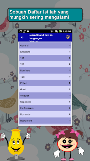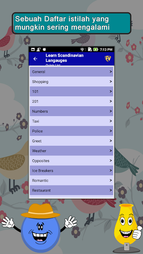 Pelajari Skandinavia Bahasa SMART Guide adalah bahasa yang komprehensif aplikasi belajar. Hal ini dirancang dari pemula sampai tingkat ahli. Aplikasi belajar bahasa offline dilengkapi dengan 2.135 kata-kata penting dan frase ditumpuk rapi di bawah 55 kategori yang berguna. Fitur dari aplikasi ini adalah Daftar Cepat, EduBank, Quiz, Sumbang, Potpourri, Ganti Lingo dan Search. Aplikasi ini memiliki bahasa seperti bahasa Inggris, Swedia, Denmark, Finlandia, Norwegia dan Islandia. Ini berisi Pengucapan dan fonetik dari kata-kata untuk memudahkan pembelajaran.