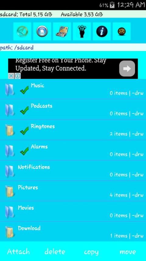 program Memungkinkan pengguna untuk pengelolaan semua file berada di memori telepon dan kartu SD