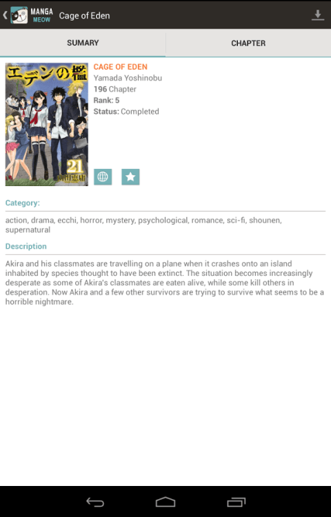 Millions of free Android apps are provide on 9apps. 10,000+ users downloaded Manga Meow latest version on 9Apps for free every week! When you click, the app will start downloading and wait till it completes installation you can start play. This hot app was released on 2015-05-19. Don’t be hesitate, download and install it on your mobile phone now!