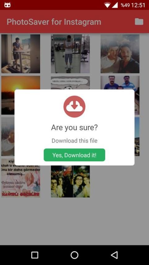 Foto saver untuk Instagram memungkinkan Anda untuk men-download foto Instagram dalam kualitas sempurna, ini juga memungkinkan Anda untuk melihat download foto pada folder Anda.