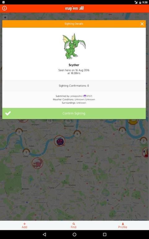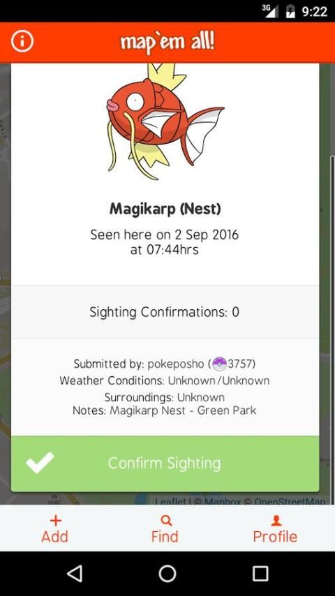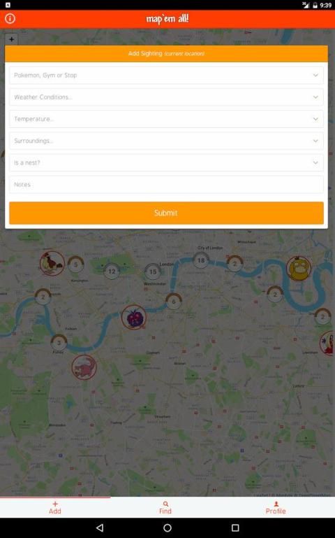 - Pengiriman Penampakan yang tidak hanya berdasarkan waktu, tetapi juga termasuk cuaca, rincian lingkungan dan pilihan untuk menandai Sarang kemungkinan untuk membantu pengguna lain menentukan kondisi kemungkinan di mana Pokemon tertentu akan bertelur.