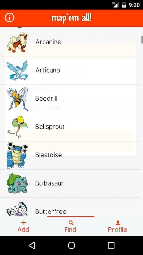 Disclaimer - Map`em semua adalah tidak berafiliasi dengan aplikasi resmi Pokemon Go atau itu pencipta. "Pokemon Go", Pokemon dan karakter nama atau citra adalah merek dagang atau merek dagang terdaftar dari pemiliknya masing-masing. Penggunaan merek tersebut tidak menyiratkan afiliasi dengan atau pengesahan oleh tanda holders.We tidak menggunakan API resmi untuk memetakan lokasi dari Pokemon dan tidak berinteraksi dengan server resmi dengan cara apapun. Semua data kerumunan bersumber dan user disampaikan data dengan Map'em semua pengguna dan sumber-sumber publik.
