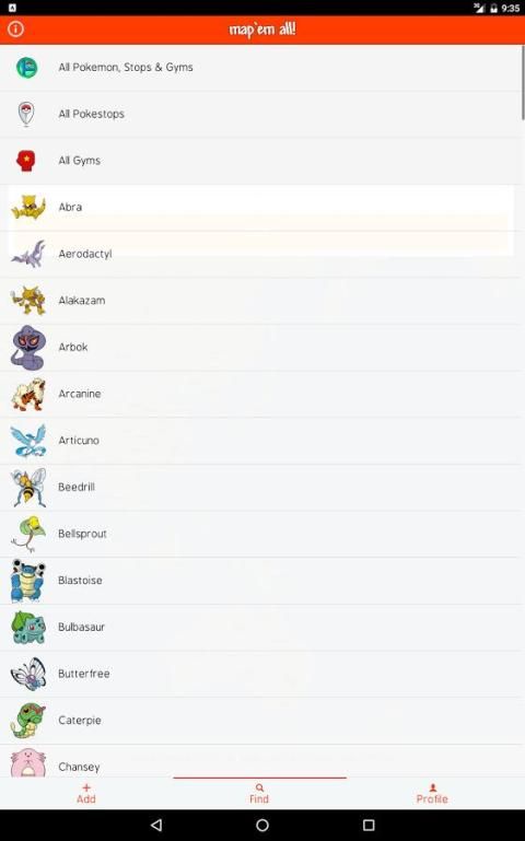 Map`em semua adalah aplikasi pemetaan nyaman dan lengkap untuk pemain Pokemon GO yang ingin mencari, menemukan dan membantu untuk mengungkap posisi Pokemon, Pokestops, Gyms dan Sarang - dengan jumlah cukup lokasi dari berbagai sumber! Kami tidak sumber data dari server resmi Pokemon GO atau gunakan API Pokemon GO dan platform kerumunan-sumber yang menggabungkan tersedia untuk umum dan pengguna diserahkan lokasi untuk memungkinkan Anda untuk menjaga jari Anda pada denyut nadi.