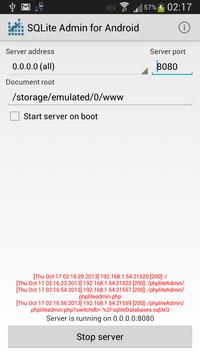 It installs on your phone a Web Based SQLite Admin tool in which you can open from your computer.