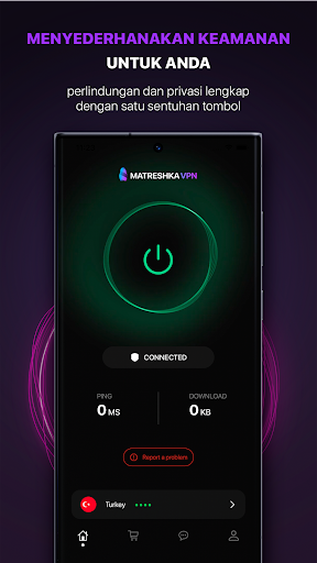 VPN Matreshka - Internet aman di mana pun Anda berada. Koneksi seluler atau titik wi-fi publik, data Anda terlindungi dengan aman oleh protokol enkripsi ujung ke ujung. VPN cepat tanpa batas kecepatan atau lalu lintas: Streaming, film dan serial, game - tanpa buffering dan tanpa macet.
