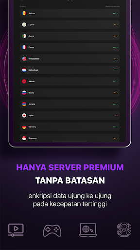 Tidak ada batas kecepatan atau lalu lintas: tonton, unduh, mainkan, kirim selama yang Anda suka dan lakukan dengan kecepatan tertinggi. Koleksi besar server di lokasi-lokasi terbaik memungkinkan Anda untuk mengakses sumber daya yang mungkin tidak tersedia di negara tertentu atau mempercepat koneksi Anda.