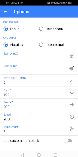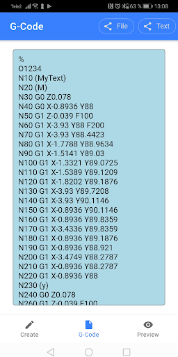 Hasilkan teks ukiran dalam kode G untuk mesin CNC Anda. Tidak pernah semudah ini membuat teks terukir standar. Tentukan: teks, tinggi, lebar, font, kedalaman dan aplikasi menghasilkan teks Anda dalam kode ISO (fanuc / haas) g. Fitur-fitur pratinjau dan berbagi dimasukkan.