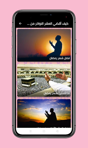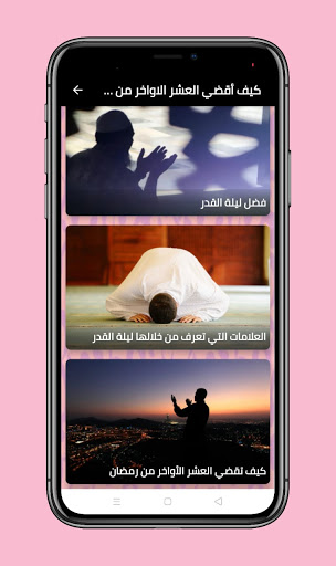 Sepuluh terakhir bulan Ramadhan berisi sekelompok khas dan dipilih dari klasifikasi dan topik penting untuk puasa dan hari-hari sepuluh terakhir bulan Ramadan untuk beribadah pada hari-hari sepuluh terakhir bulan Ramadhan, di mana aplikasi berisi kategori berikut