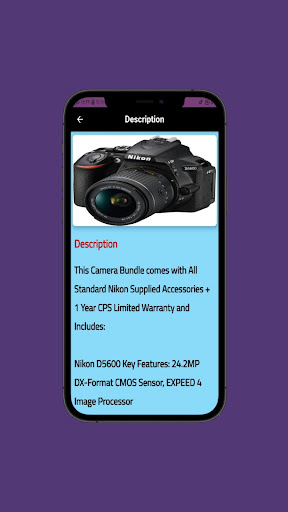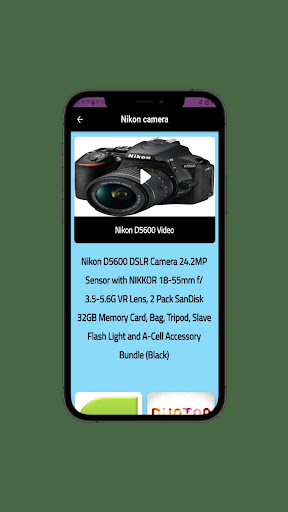 Aplikasi Kamera Nikon juga berisi banyak jenis kamera lainnya, seperti fitur Nikon D5600 yang dibangun -Dalam Konektivitas Snapbridge untuk mengizinkan transfer citra yang mulus ke perangkat seluler.