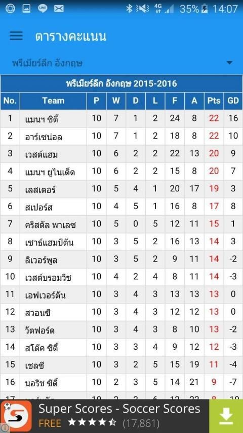 - Hasil: Apa klasemen liga. Baik Thailand dan luar negeri, diperbarui seketika.