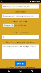 Profesional dan pengrajin dapat mengidentifikasi satu sama lain pada platform ini, kami berharap Engineers (mekanik, sipil, listrik, e.tc pertambangan), mekanik, mekanik injector, dll semua diharapkan pada platform ini dan dapat meng-upload deskripsi singkat dari diri mereka sendiri dan pengalaman untuk klien potensial untuk melihat