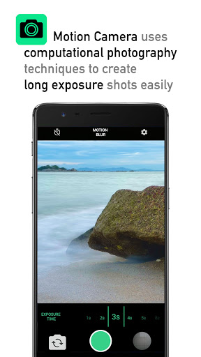 Motion Camera adalah aplikasi kamera yang dibuat untuk pemotretan tembakan paparan panjang dengan mudah tanpa khawatir foto-foto yang berlebihan pada siang hari. Ini dirancang untuk pengguna hanya mengistirahatkan ponsel pada posisi stabil, sesuaikan waktu pemaparan, dan tembak. Motion Camera menggunakan teknik fotografi komputasi untuk membuat efek paparan yang panjang termasuk efek gerakan blur dan light trails dengan menggabungkan puluhan / ratusan gambar ke dalam gambar paparan panjang akhir.