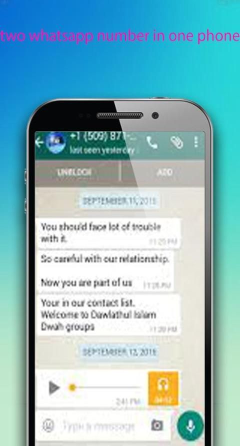 Dan mengambil pesan Watsp tua dan sangat ideal untuk telepon dua-piece dan cepat beralih di antara rekening dan memilih WTSP Ditambah Biru
