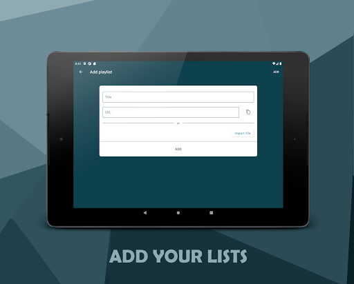 You only need a m3u list url or file. Paste the url or open the file from the app and start enjoying IPTV! Easy, doesn't it?