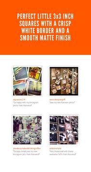 With Kanvess, you can order high quality prints of any of your Instagram photos. The prints are beautiful little 3 inch squares with a smooth finish and a crisp white border.