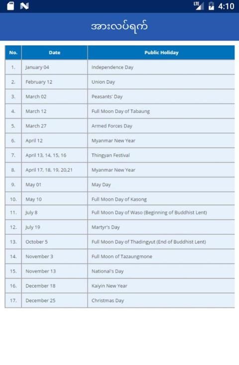 - Myanmar Harian Kalender 2017