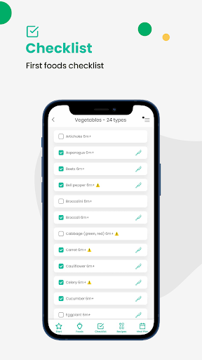 - daftar periksa tempat Anda dapat melacak makanan bayi Anda dan membuat catatan
