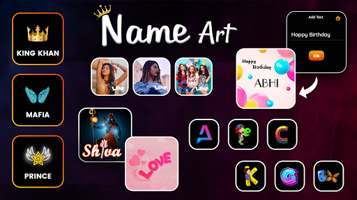 to create and design cool cards, posters, logos, memes, quotes, and vibrant name art. You can decorate and style your text with