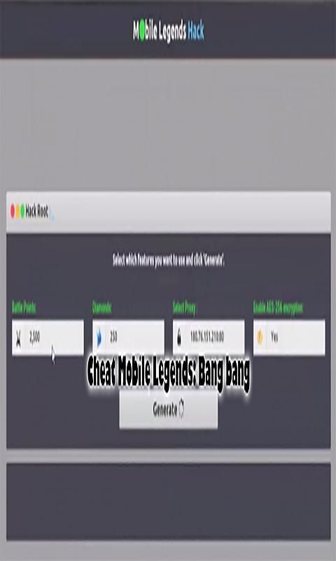 Aplikasi ini adalah cheat / hack aplikasi untuk berlian dalam permainan Ponsel Legends: Bang Bang. Aplikasi ini memudahkan Anda untuk bermain Ponsel Legends game.