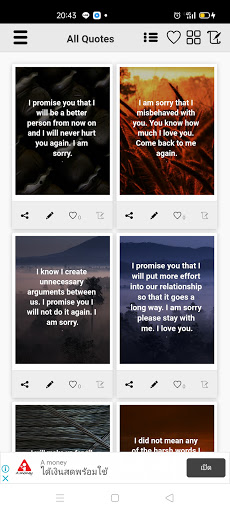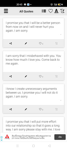 This is an App that stores many great sorry messages for your girlfriend. I will continue adding new quotes timely. There are many Sorry messages for Girlfriend that you can send to your girlfriend.