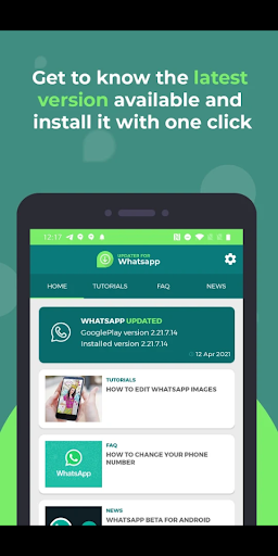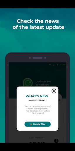 > Pembaruan untuk WhatsApp memeriksa versi terbaru yang tersedia di Google Play dan memungkinkan Anda untuk menginstalnya secara otomatis.