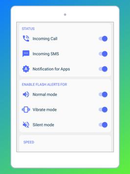 Now you can turn all-flash alert ON or OFF with only one tap button and you can turn On or Off LED flash alerts smart notifications on incoming call, smart notifications on incoming SMS. You will have control the phone mode from inside the app that is normal mode / silent mode / vibrate. You can set the LED flashlight alerts working only when mobile is locked and can set the number of flash alerts on missed call smart notifications or you want for SMS. You can also set LED flashlight on and off durations and can change the speed of Flashlight alerts on call and SMS.