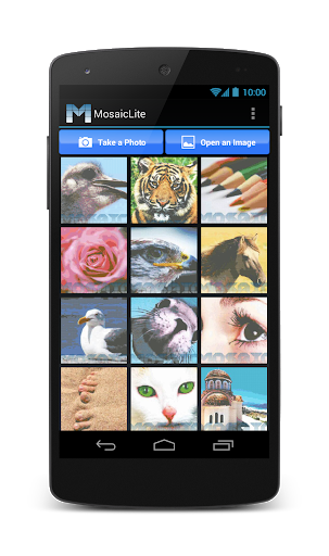 The advantage of Mosaic over other similar applications is that you don't need to have thousands of photos on your android device to produce an amazing Mosaic. You can just snap a single photo or select a single image from your gallery and Mosaic will produce an impressive artistic composition.