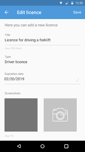 * Store photos, descriptions, and dates of training and expiration for all your licenses, training certificates, and other credentials