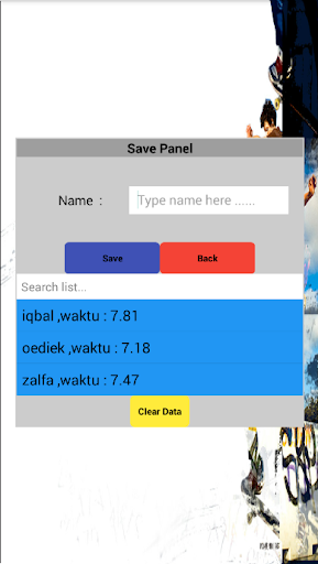 Aplikasi ini bias digunakan oleh guru olah raga sebagai alat stopwatch sekaligus menyimpan data siswa yang telah di hitung waktunya