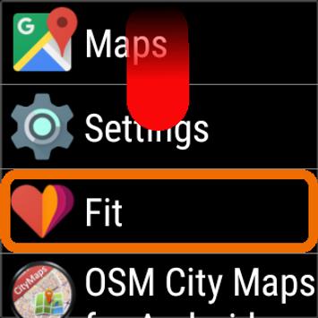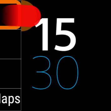 Once appeared, it presents the applications of the watch in a single list ordered according to usage frequency. Swipe vertically to move the focus over the applications.