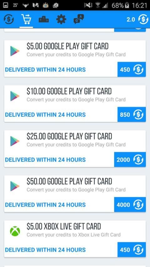 - $ 5, $ 10, $ 25, $ 50 Google Play Gift Card