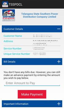 Please note that sometimes due to technical issues your bill payments can take 1-2 business days to be updated at TSSPDCL's website. So we request you to make the payment at least 2 working days before your bill due date.
