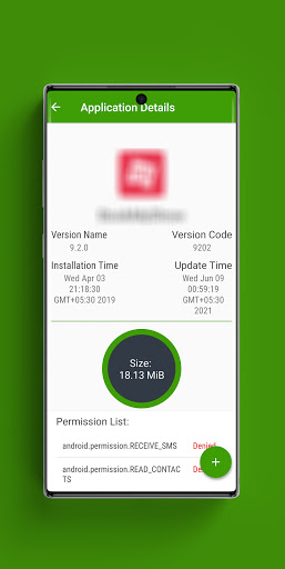 - Waktu instalasi aplikasi - Perbarui Waktu - APK Ukuran - DetailDaftar izin aplikasi - diizinkan dan ditolak