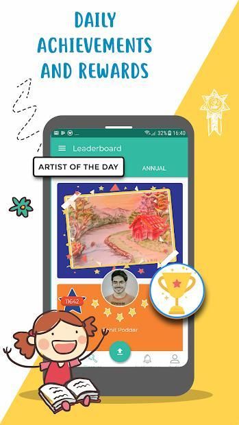 Every upload made by you & stars/ comments received give the child points which reflect in our leaderboard. Your child stands a chance to move to the top of the Plowns leaderboard or win our Artist of the Day crown, which will fill your child with pride.