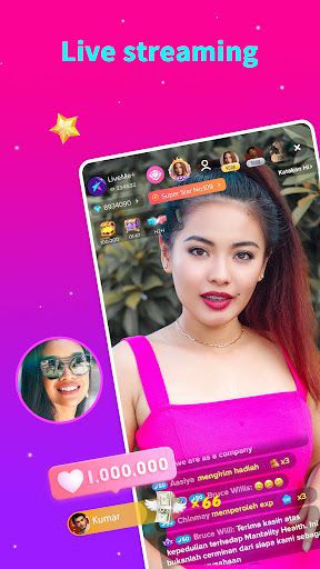 - Jutaan penyiar berbakat berkumpul di sini, termasuk penari dan penyanyi yang bersemangat, tukang makan, komedian, dan banyak lagi, yang menyajikan siaran live dan video live yang keren.
