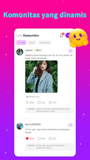 - Mulai live hanya dengan 1 sentuhan dan lakukan hal yang kamu sukai, bernyanyi, menari, makan, jalan-jalan, bermain game...