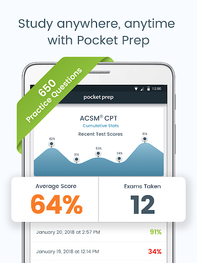 Pocket Prep’s ACSM CPT practice test app is a powerful exam simulator that allows you to create customized practice tests with detailed answer explanations for every question. View your results and exam history with just a few taps. Study anywhere at any time without Internet connectivity.