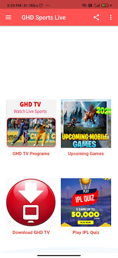 2.) UI yang dapat dimengerti: Dalam aplikasi TV Live TV Live Sports ini, Anda mendapatkan UI yang sangat mudah dan mendasar. Di mana Anda menemukan poster yang berbeda berdasarkan acara pertandingan IPL TV GHD. Dan klik bahwa Anda melihat pertandingan. Tetapi di sini Anda tidak dapat melihat berbagai bahasa seperti GHD Live Malayalam, aplikasi TV Live Sports GHD Hindi. Jadi GHD Sports Live Cricket Unduh. Football versi. Dan kali ini Anda tahu bahwa Olahraga GHD Live IPL 2021 akan segera hadir. Jadi ini adalah pembaruan TV langsung olahraga GHD terbaik di mana Anda dapat menemukan kriket langsung olahraga GHD.