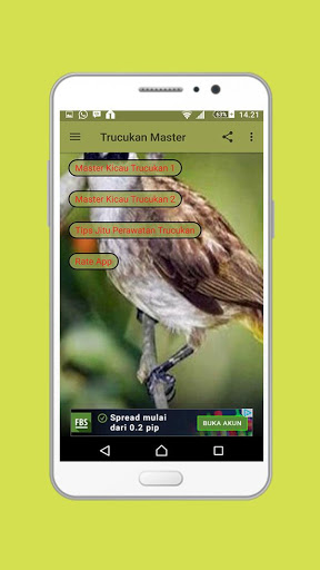 aplikasi ini berupa kumpulan Suara Burung Trucukan Gacor