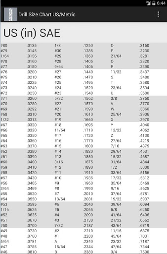 List of drill bits in US inch SAE and Metric. This app requires no permissions.