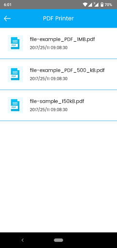 Sekarang Anda dapat mencetak file dengan cara cepat dengan aplikasi printer PDF ini. Printer PDF memberi Anda opsi untuk menelusuri file PDF setelah mengklik file browse maka aplikasi printer PDF secara otomatis mencari dan mencari tahu semua file PDF dari penyimpanan internal dan eksternal Anda, dan menampilkan daftar file PDF di layar ponsel Anda.