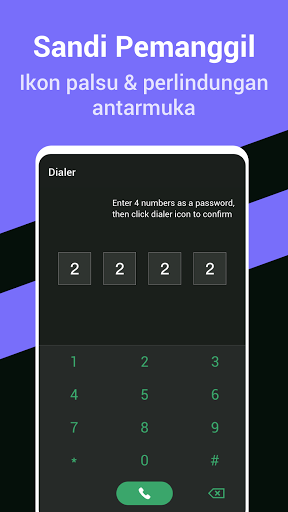 -Hanya Anda yang dapat membuka ruang pribadi dengan memasukkan kata sandi 4 digit khusus pada antarmuka kalkulator dan menggunakan aplikasi tersembunyi
