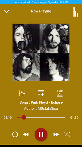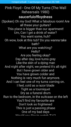 6. Lyrics of all songs, when the song is playing you can see the lyrics of the song Pink Floyd.