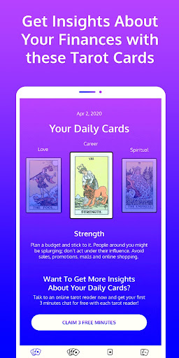 * Free tarot readings - get the first 3 minutes FREE every time you contact a new psychic, in any category