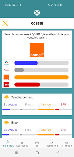 Qosbee menawarkan perbandingan pribadi yang dipersonalisasi dari kinerja operator seluler di Prancis dan luar negeri.Mudah digunakan dan menyenangkan, Qosbee langsung menawarkan: