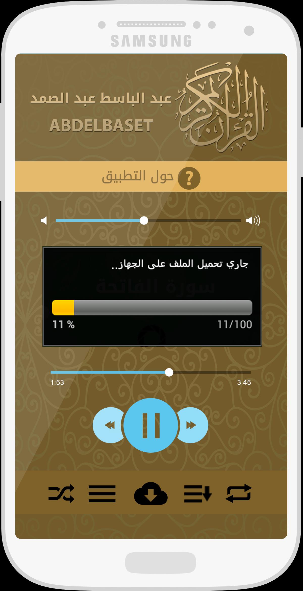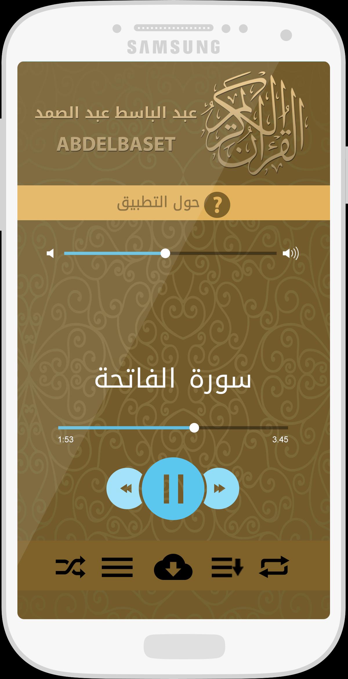 Free and supported islamic app of holy quran recitation of sheikh Abdelbasset Abdessamad Warch from nafi, this app is very important for any muslim to listen the koran, with this app you can listen and download the holy quran as mp3 files with recitation of sheikh Abdelbasset Abdessamad.