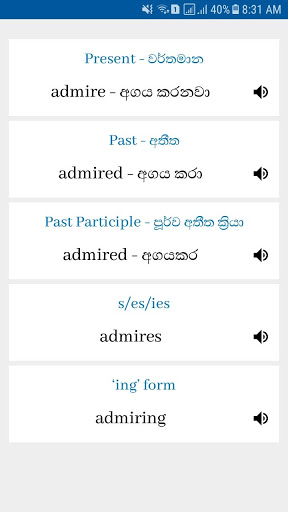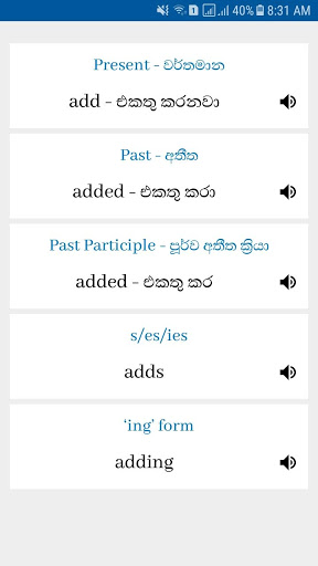 If you know verb forms, it is very easy to learn English. This application will help you to learn Regular & Irregular Verbs for English with their Sinhala meaning.