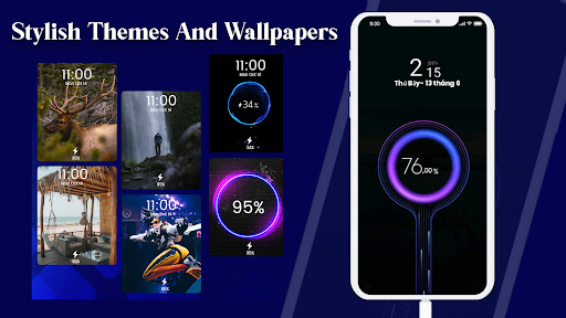 With battery charging animation screen, you'll love the "always on display" feature. Even when your device is idle, the enchanting charging animation keeps on playing, making your screen come alive with beautiful visuals. The best part? It doesn't drain your battery too much, so you can enjoy it without worrying about power. Free Battery Charging Animation determines the phone battery charging level on your mobile lock and the home screen is easy.