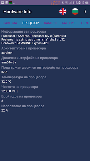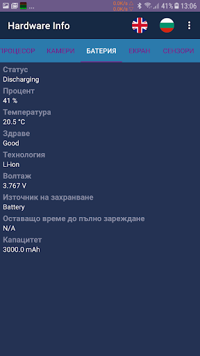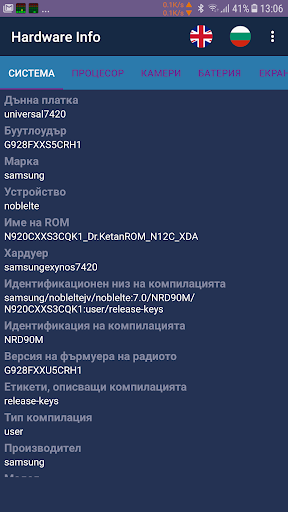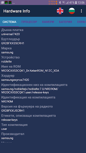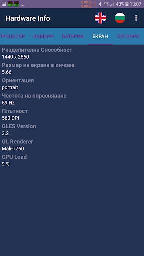 Dengan aplikasi ini Anda dapat memperoleh informasi terperinci tentang perangkat Anda - sistem, prosesor, kamera, baterai, layar dan sensor.