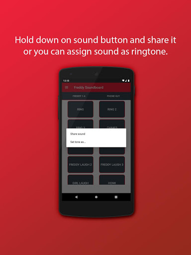 * Set Freddy sounds as ringtone, alarm or notification tone.